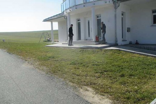 Unbefestigte Garagenzufahrt und Eingangsbereich