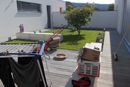 Intimer Erholungsbereich mit Sitzplatz und blickdichter Abgrenzung zum Nachbarn.